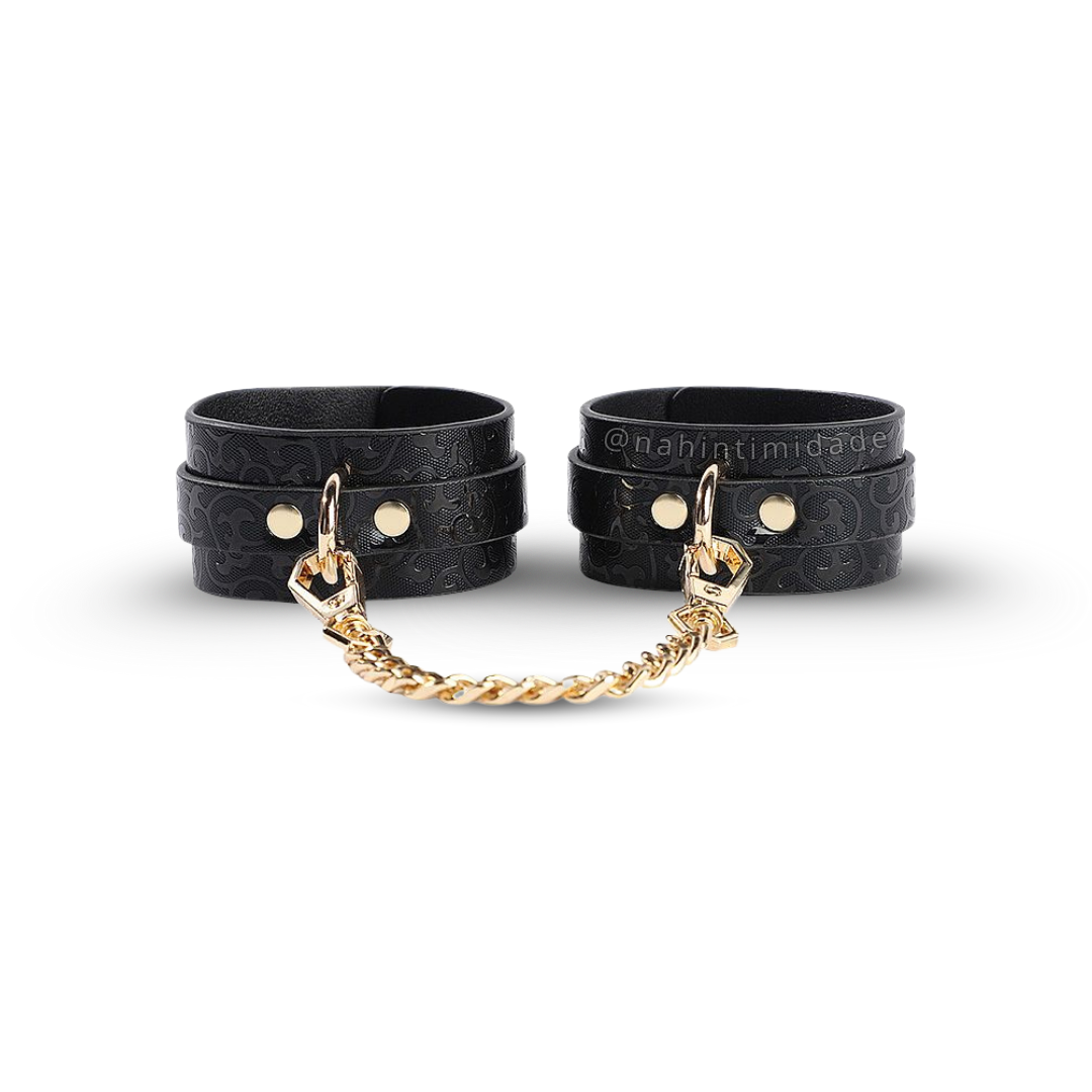 Entre de cabeça no clima do bondage e da dominação com estas algemas em couro sintético reforçado, feitas para quem gosta de explorar limites com segurança, intensidade e muito prazer.