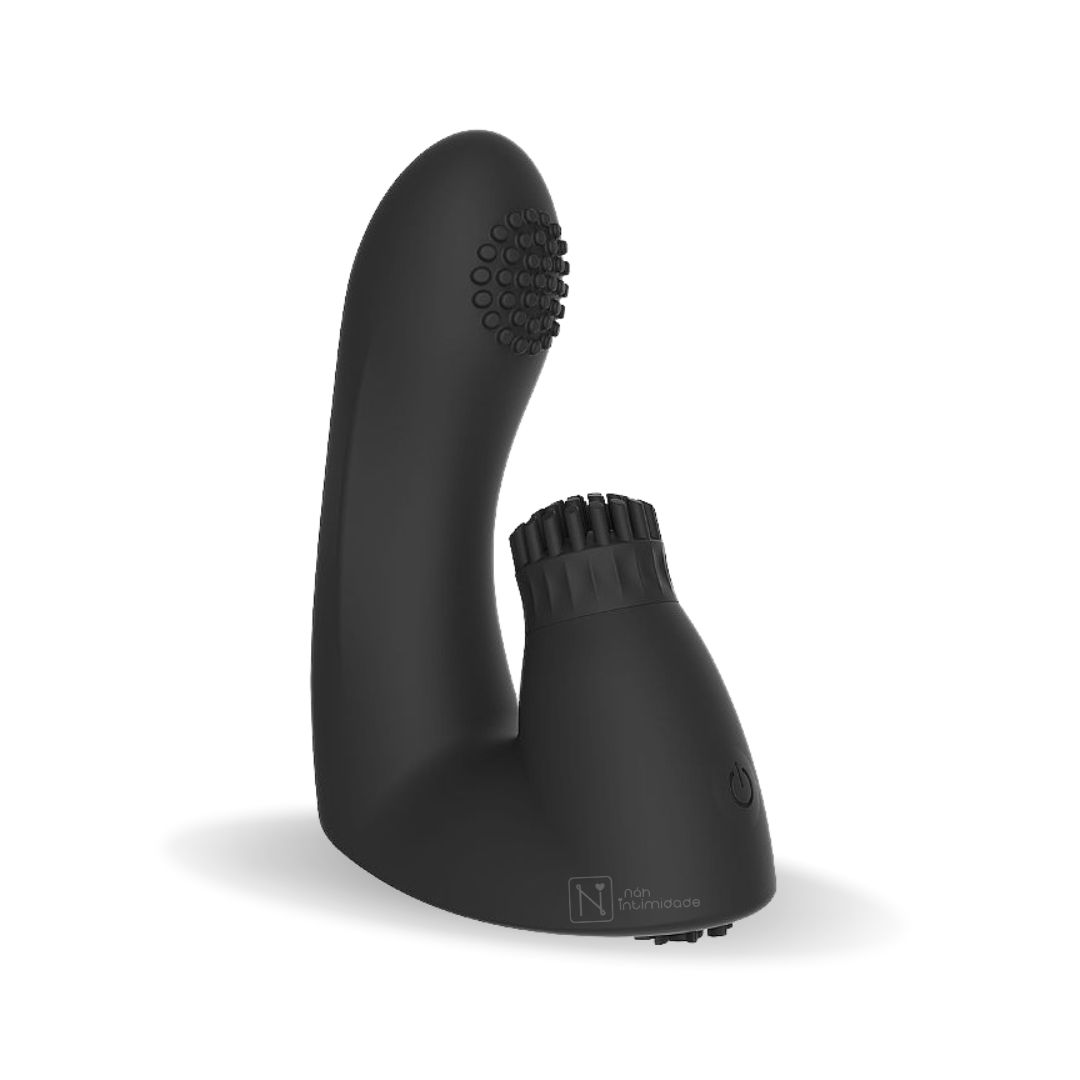 Descubra uma nova forma de prazer com a Dedeira Em Silicone Com Vibro e Estimulador de Clitóris Giratório.